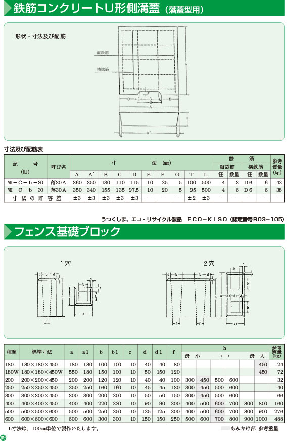 鉄筋コンクリートU型側溝蓋 / フェンス基礎ブロック